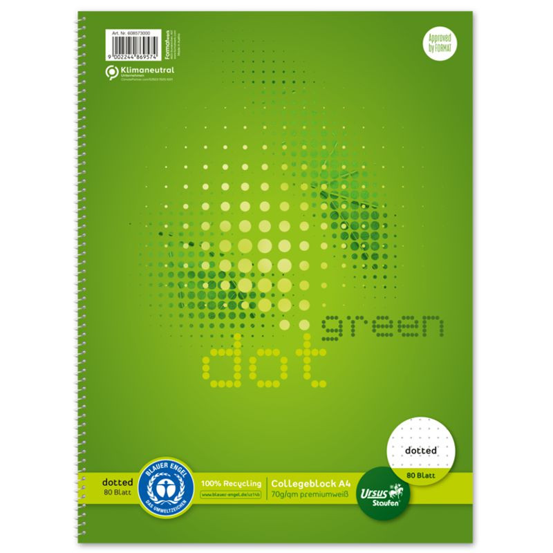 Ursus Green Collegeblock A4 80 Blatt 70g/qm dotted 4-Loch