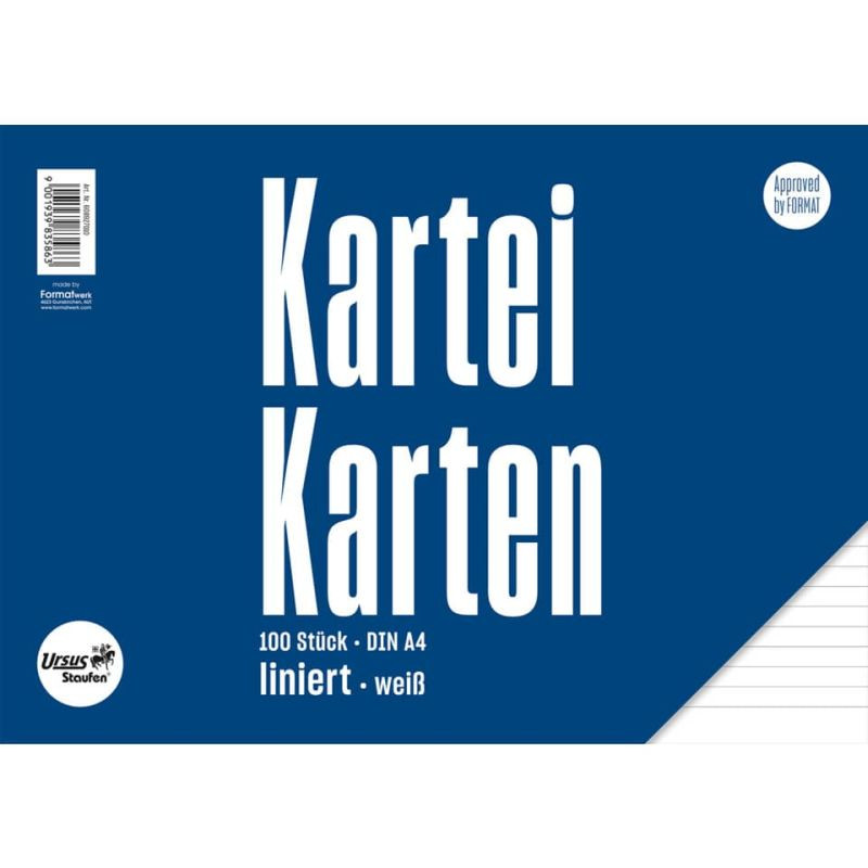 URSUS Karteikarte Style A4 quer 100 Stück liniert blau