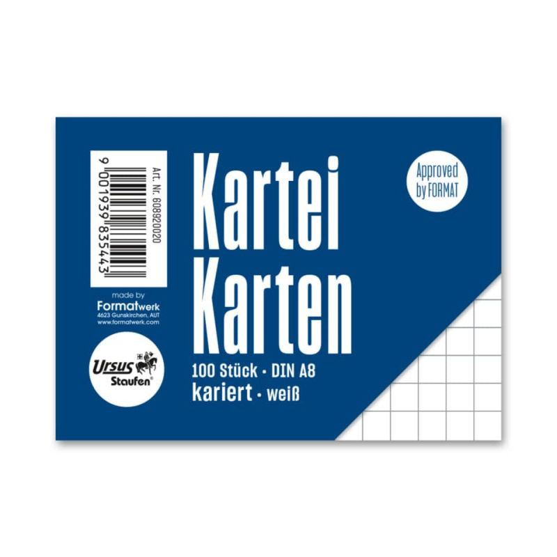 URSUS Karteikarte Style A8 quer 100 Stück 5mm kariert weiß
