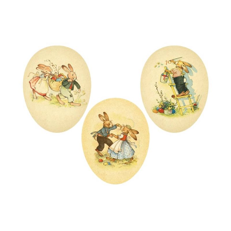 Das Füllei Happiness III Ø 9 cm sortiert ist ein liebevoll gestaltetes dekoratives Osterei im nostalgischen Stil. Die detailreichen Illustrationen zeigen klassische Osterszenen mit Hasenmotiven und vermitteln eine warme, traditionelle Festtagsatmosphäre. Jedes Ei ist sorgfältig bedruckt und überzeugt durch seine harmonische Farbgebung im Vintage Design. Dank der handlichen Größe eignet sich das Füllei ideal als dekoratives Element oder als stilvolle Verpackung für kleine Osterüberraschungen.