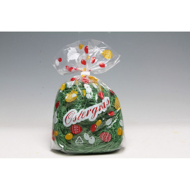 Das Ostergras aus grüner Holzwolle im bedruckten Beutel mit 50 g Inhalt ist die ideale Füllung für Osterkörbe, Geschenktragetaschen und dekorative Arrangements. Die natürliche Holzwolle in frischem Grün sorgt für eine ansprechende Präsentation von Ostereiern, Süßigkeiten oder kleinen Geschenken und verleiht jedem Osterpräsent eine hochwertige Optik. Der dekorativ bedruckte Beutel mit Ostermotiven eignet sich auch ideal für den direkten Verkauf und macht das Produkt sofort einsatzbereit.