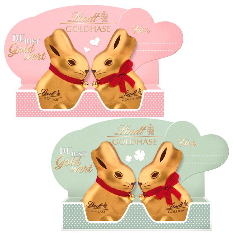 Der Lindt Du bist Gold wert Goldhase Duo bietet gleich zwei goldene Hasen aus feinster Lindt-Schokolade, die in einer glänzenden Verpackung erstrahlen. Diese edlen Hasen sind nicht nur ein Genuss für die Sinne, sondern auch eine festliche Dekoration für das Osternest oder ein exklusives Geschenk für Ihre Liebsten. Mit der hochwertigen Lindt-Schokolade wird jeder Bissen zu einem luxuriösen Erlebnis. Ideal für die Osterzeit oder als besondere Geste für jeden Anlass. Das Goldhase Duo sorgt für unvergessliche Momente voller Genuss und Freude.
