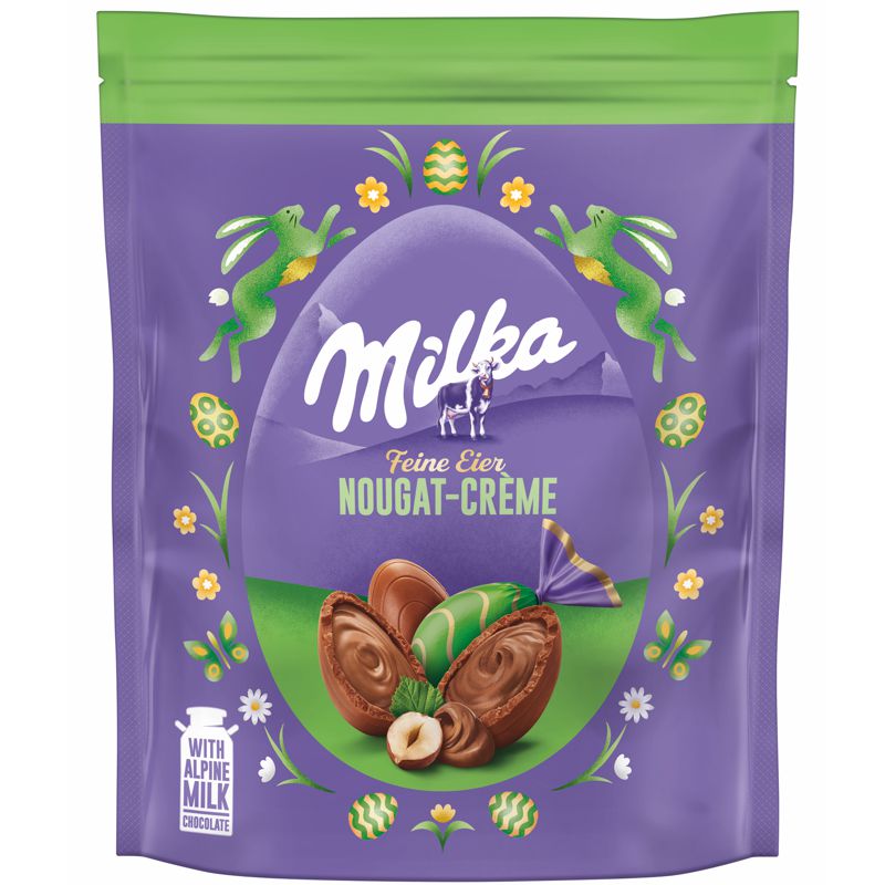 Milka Feine Eier Nougat Creme bieten eine perfekte Kombination aus zartschmelzender Alpenmilch-Schokolade und einer cremigen Nougat-Füllung. Die süße Nougat-Creme schmilzt sanft im Mund und harmoniert hervorragend mit der milden, schmelzenden Schokolade. Diese Eier sind nicht nur eine leckere Nascherei für Ostern, sondern auch eine köstliche Belohnung für zwischendurch. Ideal für alle, die den einzigartigen Geschmack von Nougat lieben.