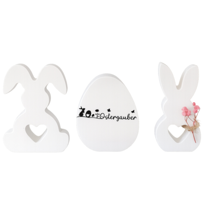 3 teiliges Dekoset bestehend aus 1 Hase, 1 Ei mit Aufschrift Osterglaube, 1 Hase mit dekorativen Trockenblumen .