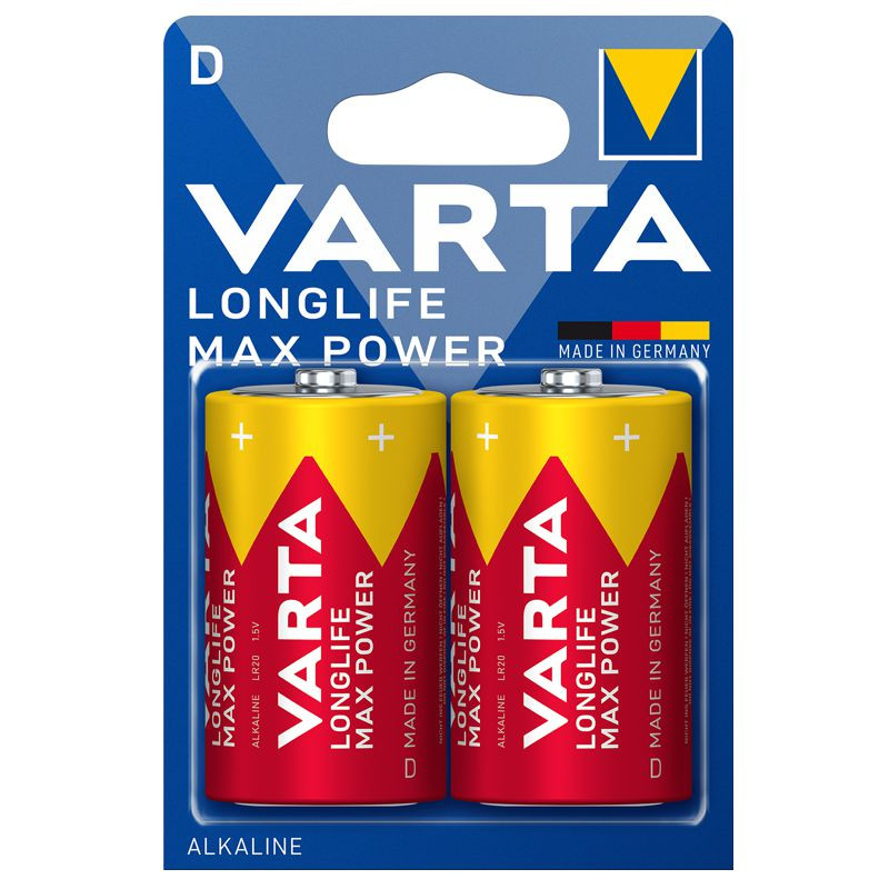 VARTA LONGLIFE Max Power, Alkaline Batterie, D, Mono, LR20, 2er Pack, Made in Germany